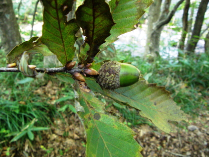 コナラ材は、クヌギとともに、雑木林の主として生育していて、ドングリの実をつけます。